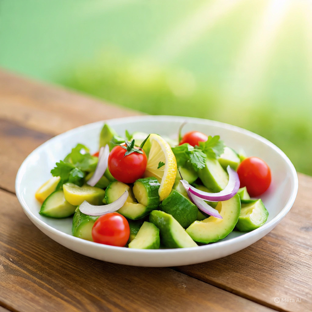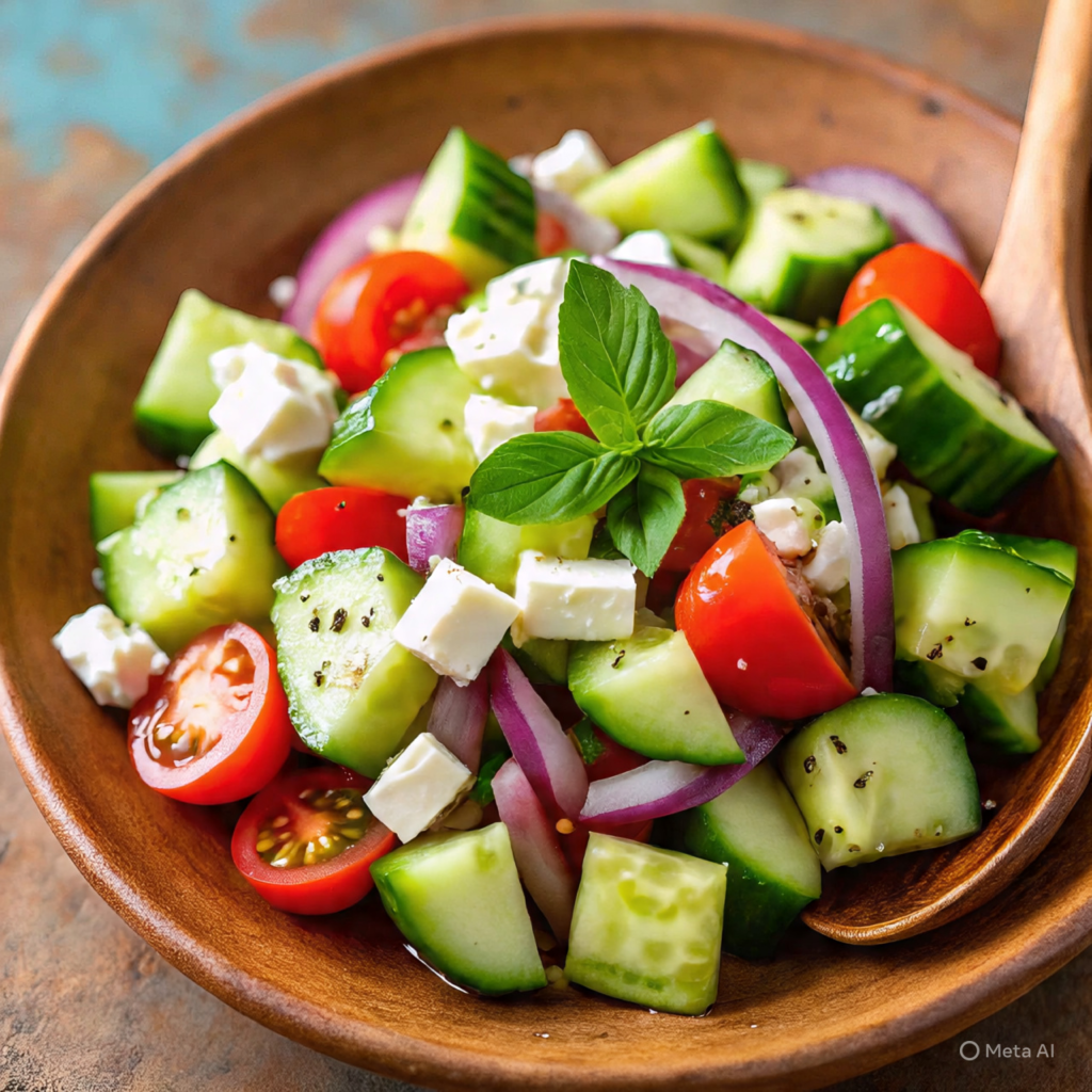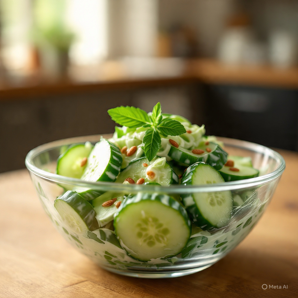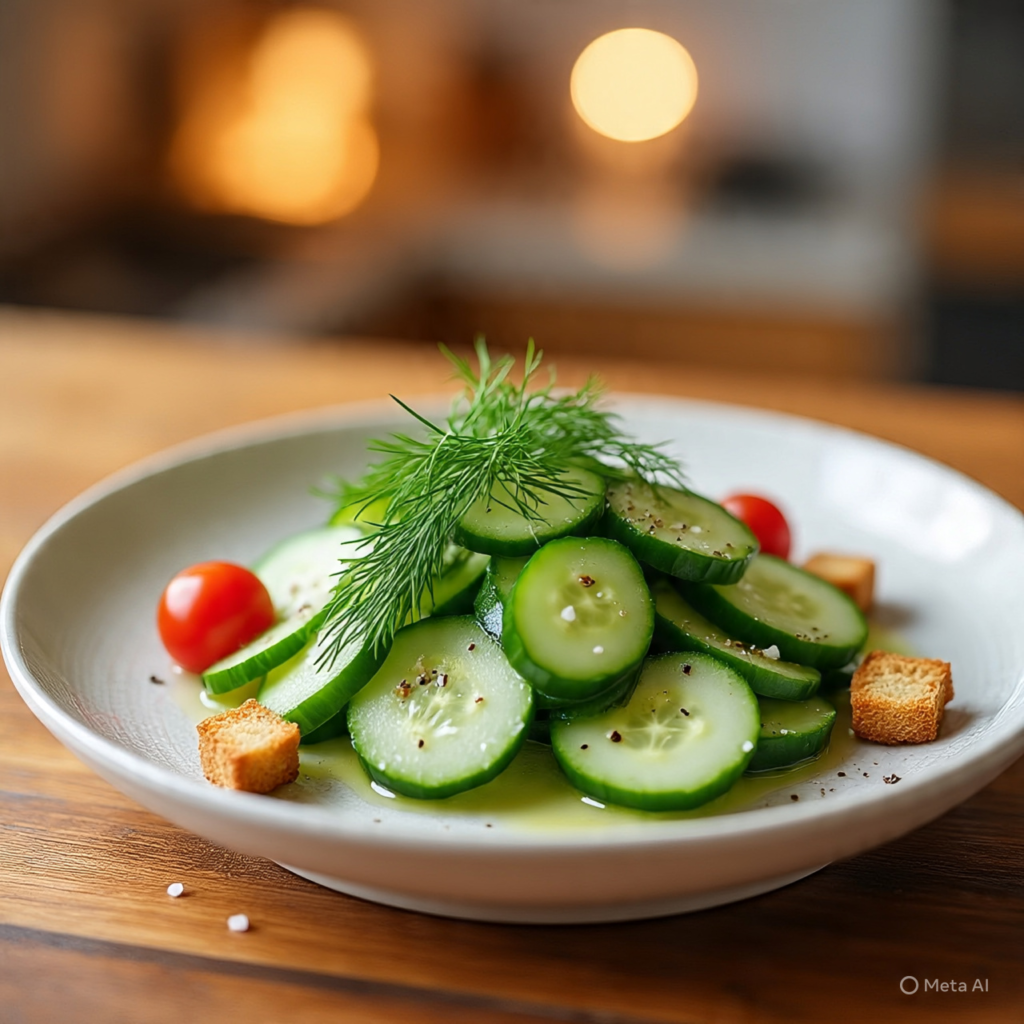 Slice cucumbers and toss them with lemon juice, olive oil, salt, and pepper. You can also add a little chopped mint for extra freshness. This salad is quick, healthy, and perfect when you need something light and refreshing.
