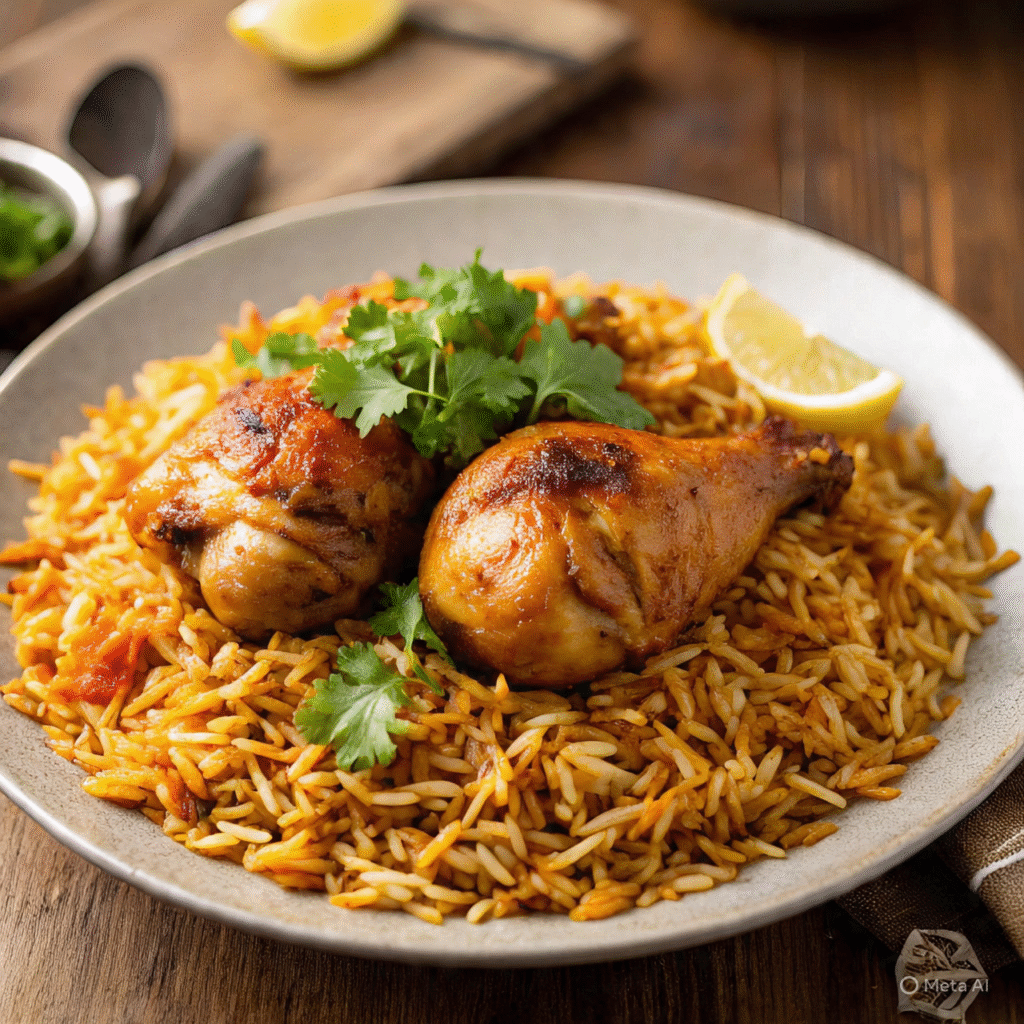 Chicken Kabsa is a spiced rice dish where chicken is cooked in a rich, aromatic broth and then combined with rice. What makes kabsa special is its balanced spice blend—not too spicy, but deeply flavorful. Unlike biryani, kabsa is milder and focuses more on aroma than heat.