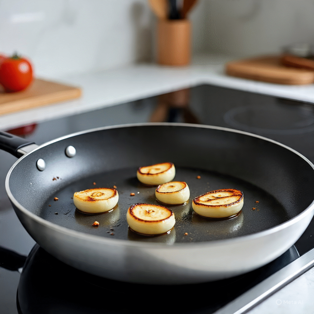 In a nonstick pan, melt the butter on medium flame. Add the chopped garlic and sauté until fragrant and lightly golden. Be careful not to burn the garlic — you just want that perfect aroma.