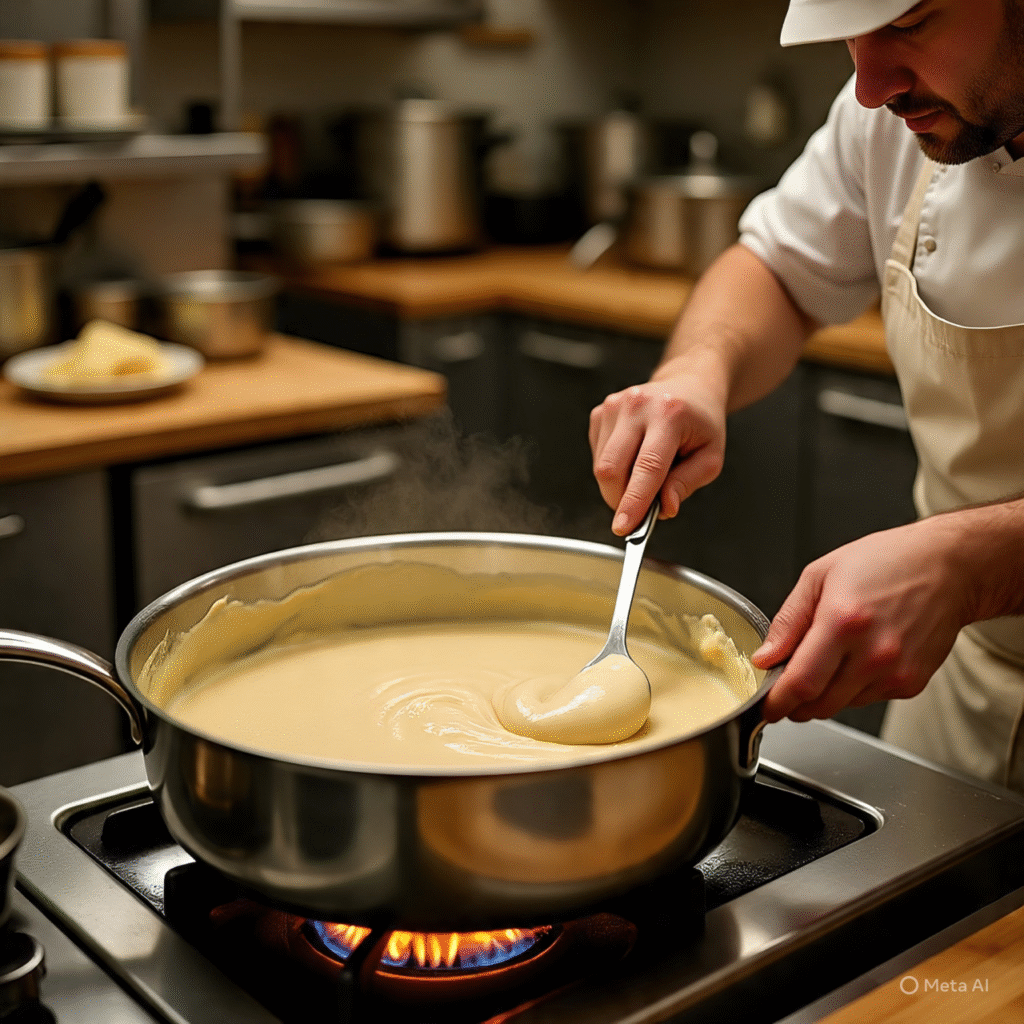 In the same pan, melt 2 tablespoons of butter. Add flour and stir for 1 minute to make a roux. Gradually pour in milk (or cream), stirring constantly until smooth and thick. Add a pinch of salt and cheese for extra flavor.