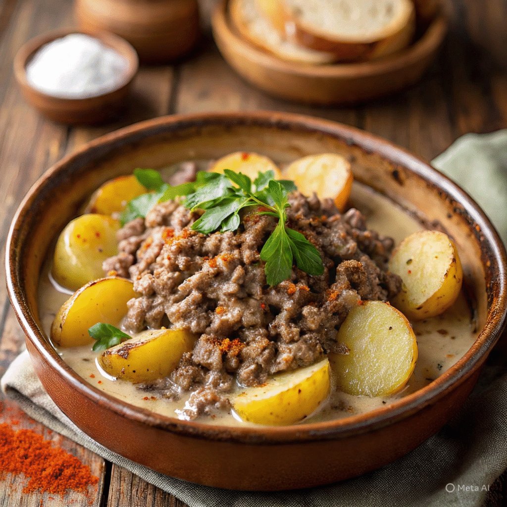 Imagine layers of thinly sliced potatoes, seasoned ground beef, and a velvety cream sauce baked until golden and bubbly. That’s the beauty of this dish—it combines the heartiness of a casserole with the creaminess of a gratin.