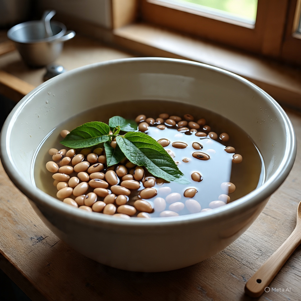 Rinse the dried beans under cold water and remove any debris. Soak them overnight in a large bowl with enough water to cover by at least two inches. Drain and rinse before cooking.